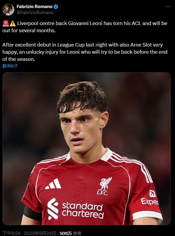 根据著名的罗马记者的报道,9月25日,北京的时间将在比赛中脱颖而出,因为利奥尼(Leoni)的18岁中央后卫莱昂尼(Leoni)患有韧带裂,并恢复了赛季结束。罗曼诺说:“利奥尼是利物浦的中心捍卫者,被CRC韧带撕裂,将持续几个月。Leoni昨晚在联赛杯中的首次亮相中表现良好,Slot对他非常满意,但不幸的是他受伤了。但是,他在联赛杯中的第三轮比赛,Liverpool,Liverpool,Beatpool,Beatpool,Beatpon beat the Southmpton 2-1-1-1-1-1-1-1-1-1-1-1-1-1-1-1-1-1-1-1-1-1-1-1-1-1-1-1-1-1-1-1-1-1-1-1-1-1-1-1。但根据Sky TV的说法,他的夏季是坏消息。窗户旁边的E男子。俱乐部决定等到赛季结束后进行计划。对于红军,关于是否应因此调整一月转移计划,进行了认真的讨论。相信Conat和Gómez,尤其是保持健康,感觉就像是一个很好的选择。因此,利物浦必须选择在冬季继续追逐男人。即使水晶宫不想让这个家伙在一月份去,利物浦似乎还需要找到另一个中央后卫。莱昂尼(Leoni)的长期伤害也将影响利物浦冠军联赛的注册清单。根据本月早些时候审查的新规则,PO Clubssssssssssssssssssssss将在玩家遭受长期伤害或疾病时交换人员。尽管职位不同,但不幸的是,这提供了以前击败的Quiesa,有机会加入冠军联赛名单。