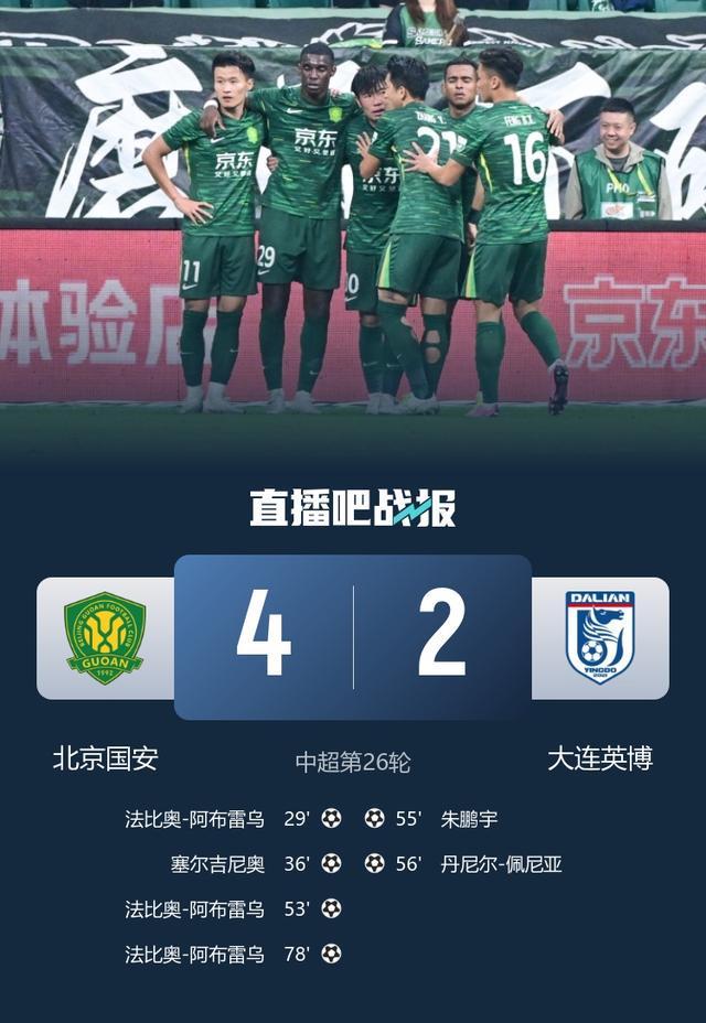 9月26日直播。在中国超级联赛的第26轮中,北京的关将在家里面对达里安·尹博。在上半场,法比奥领先,塞维利奥通过并开枪。经过一面的改变后,法比奥抓住了帽子,达里安(Darian)在一分钟内攻入了两个进球,张Xizhe得分。最后,贡恩(Guaan)4-2达利安·叶兴(Dalian Yingbo)。在分类方面,瓜恩以51分排名第四,德拉安以33分排名第八。 [重要的游戏事件]在第29分钟,Serguinho从方舟的顶部进行了微妙的传球。张Xizhe失去了精神。法比奥打进了球并打进了进球。瓜恩(Guaan)在第36分钟领先1-0↓,瓜恩(Guaan)在后面踢球,德拉安·罗伯(DraianRobó),塞尔金(Serguinho)将球带到了罚球区,并将其直接射击到网络上。郭安在第53分钟领先2-0↓,郭安进攻右侧并入侵了罚球区,并有助于连续踢。张Xizhe成为巴勒克斯的,法比奥继续并得分d再次,郭安在第55分钟以3-0领先,马勒拉莱(Malailai)摔断了十字架,吴·肖康(Wu Shaocong)清除了脚,使踢失败了。 Zhu Pengyu在左侧接近球,宾夕法尼亚州继续拿起球并开了网。比分在第60分钟重写3-2↓,瓜恩从左侧前进,塞尔贡诺和法比奥在罚球区命中了球。张Xizhe很容易以空的进球射击。 VAR介入了中间可能缺乏张Xizhe的情况。裁判直接转身确定张Xizhe在前犯规中被践踏。目标无效。在第78分钟,得分仍然是3-2。 Chang Yuning将Fabio的球向左交给了Fabio的球,后者进入了罚球区,并以低速射门,赢得了帽子戏法。古(Guang)4-2 Draian↓[比赛的焦点]在第六分钟,这对夫妇的Zhang Yuan的长期镜头在12分钟内在拱门中丢失了一枪,而Guang是剩下的人D在正确的位置。该系列击中了连续的攻击,法比奥在第24分钟失去了↓,达里安从左侧攻击。塞尔戈诺(Serguorno)在罚球区的左侧,在第84分钟从右边的罚球区越过了罚球区,有一个很好的机会在第84分钟失去机会,而Ngadewu领先球,而Fabio在90和第六分钟内失去了球。在比赛结束时,北京是Guang 4-2 Daryan Imbo。 [参与和替代信息]